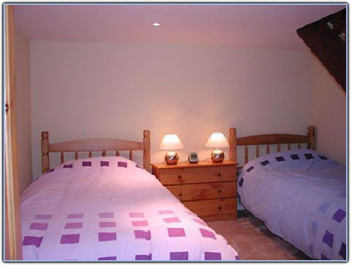 Basement BedroomThis room has a restricted height ceiling (approximately 5’ 10”) and is furnished with two single beds, a freestanding wardrobe,tallboy, and bedside drawers with touchlights and radio/alarm.