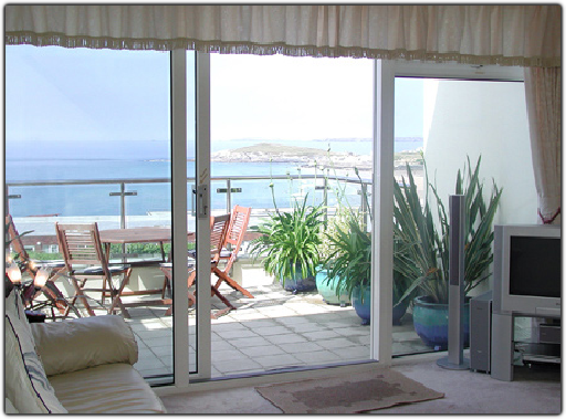 In the lounge/diner are two large leather sofas, a glass bistro table,